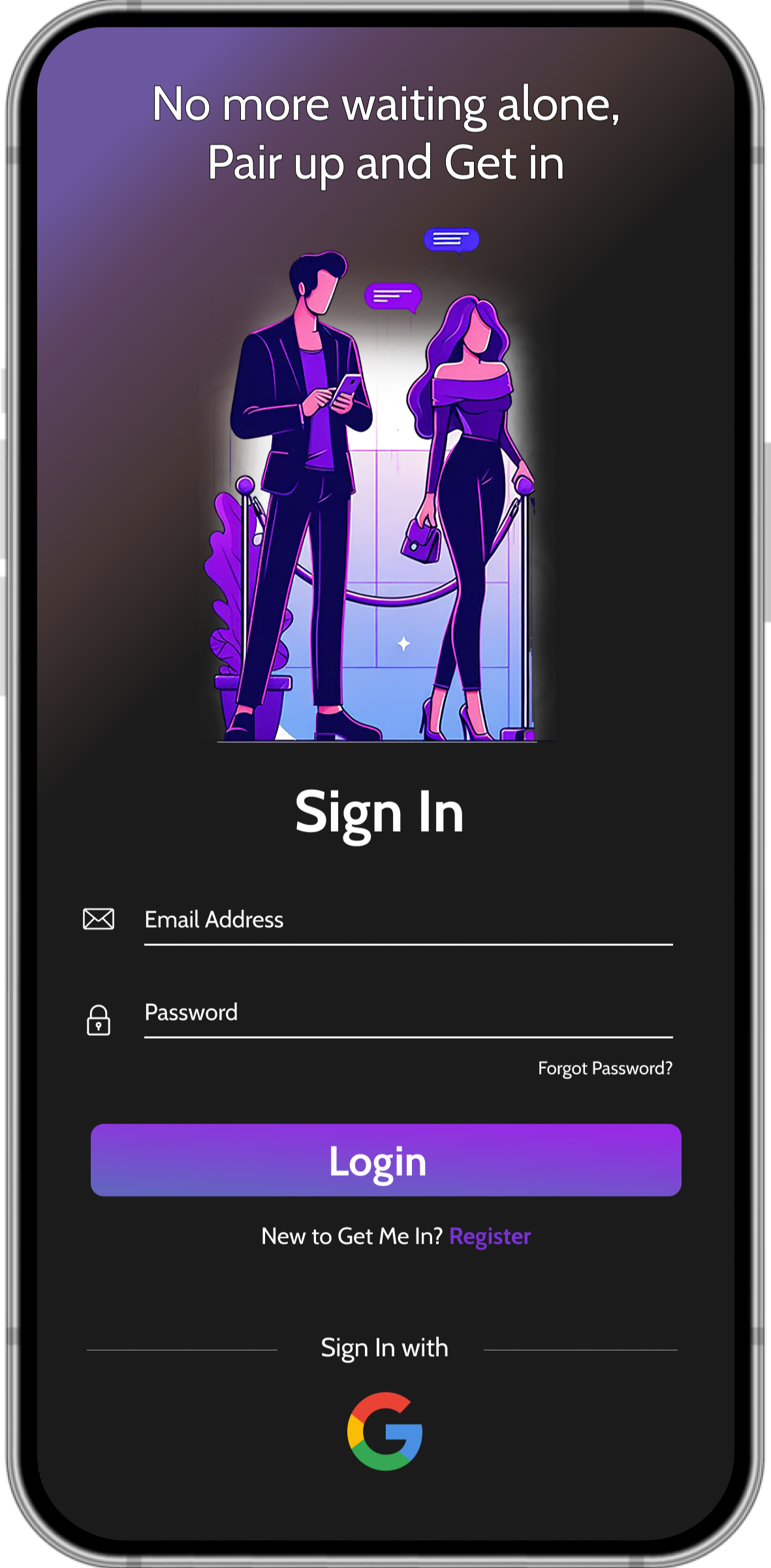 Get Me In is opening doors soon! Sign up to stay updated on our launch, and upcoming cities. Be the first to know when you can start pairing up.